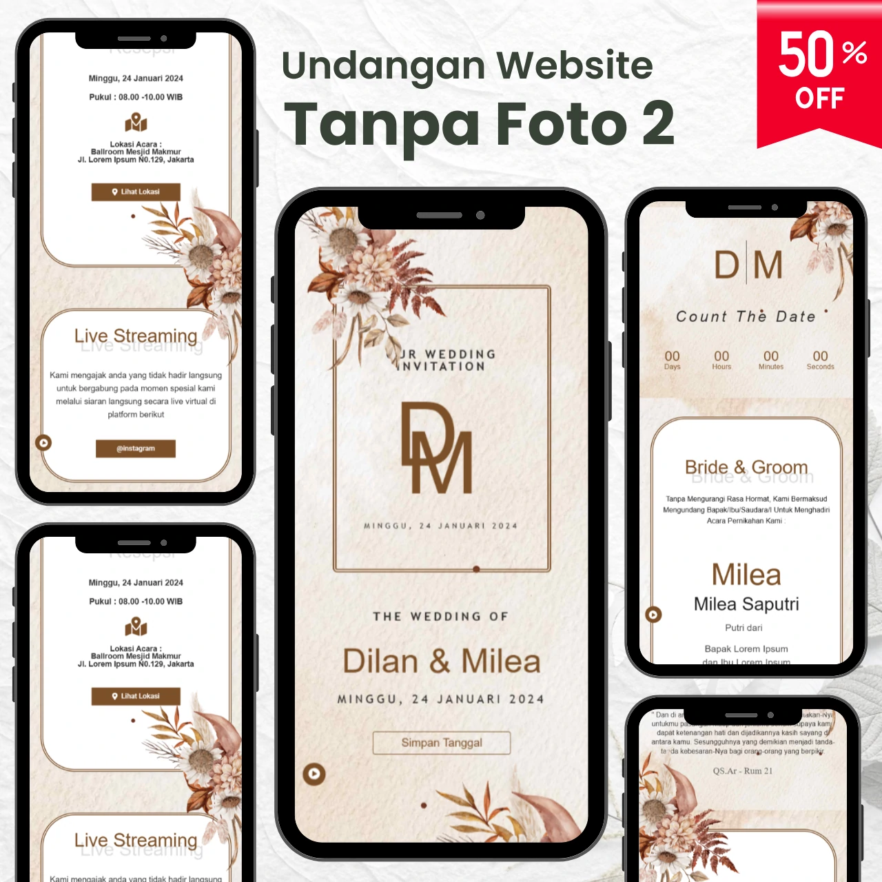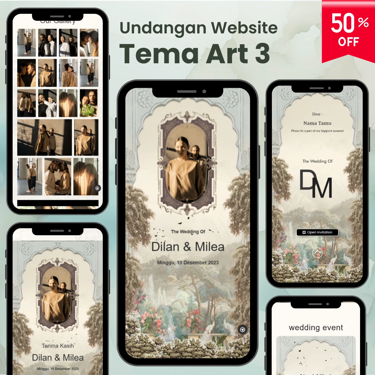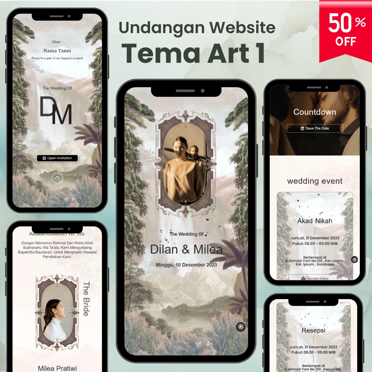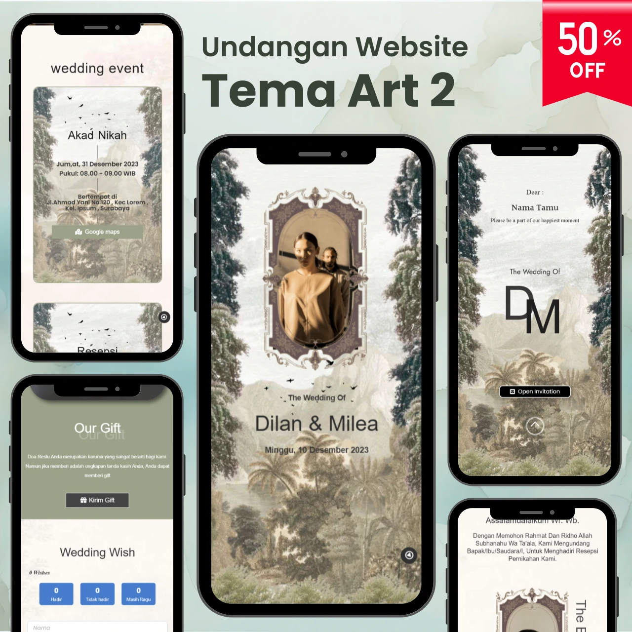 Tersedia beragam pilihan aneka template undangan digital yang menarik & kekinian.