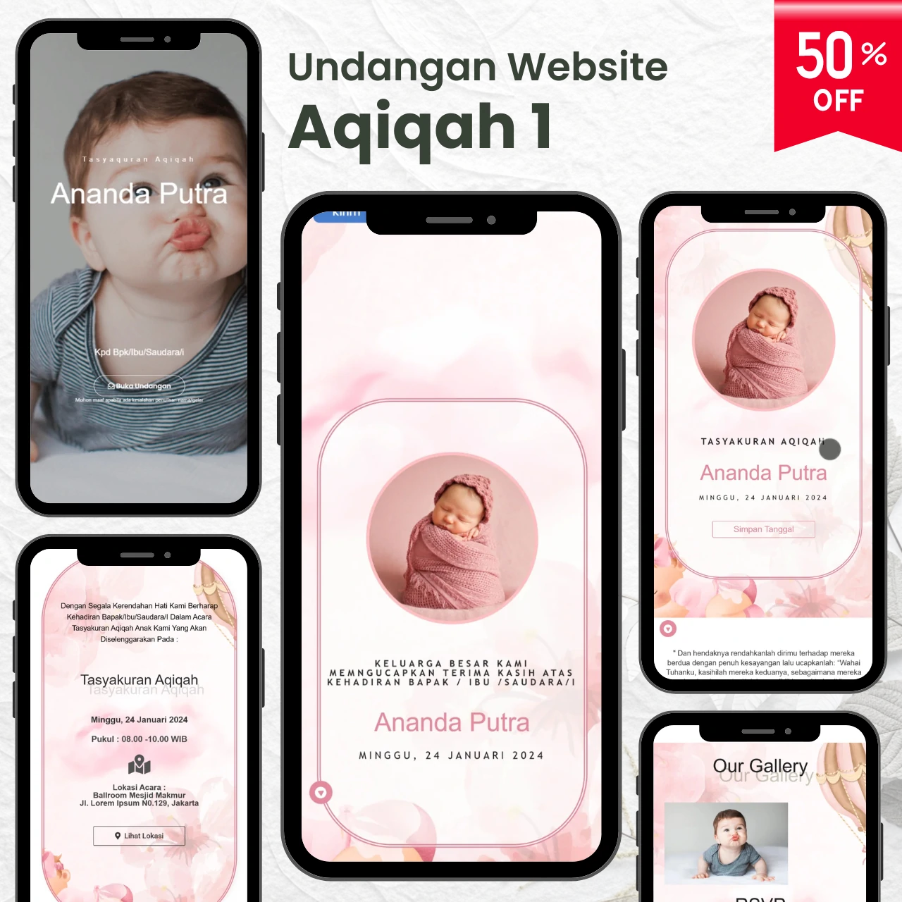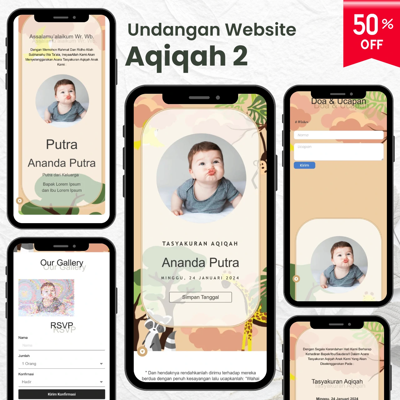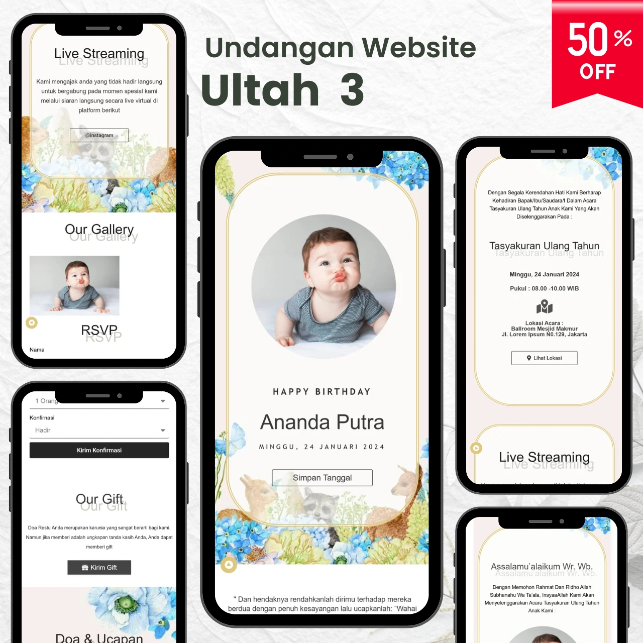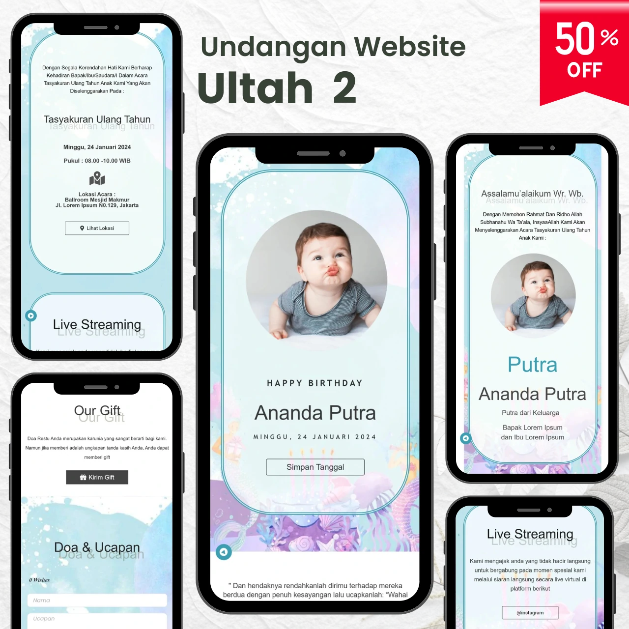 Tersedia beragam pilihan aneka template undangan digital yang menarik & kekinian.